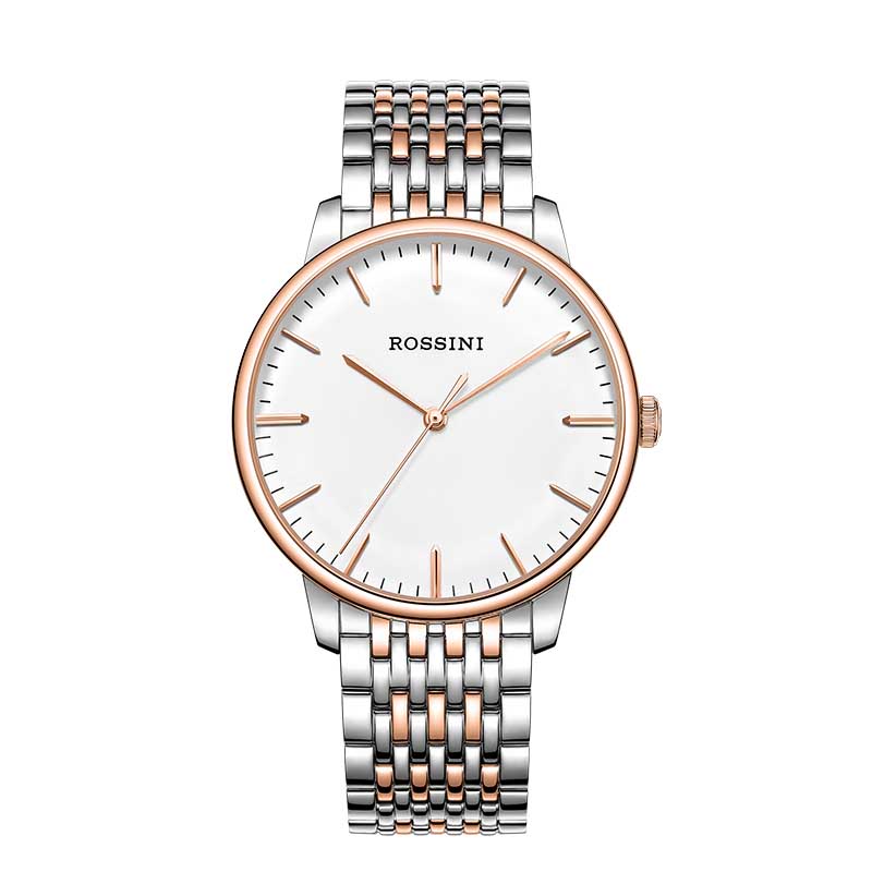 Rossini罗西尼 丝绸系列 石英手表简约情侣款白盘钢带男表50031T01A