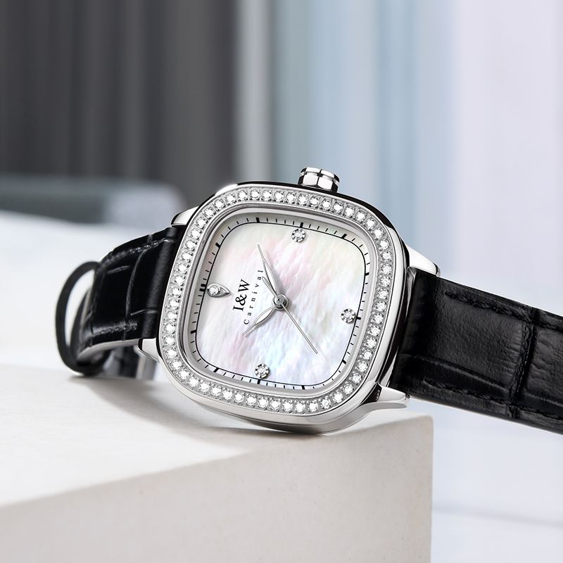 瑞士I&W爱沃驰女士手表轻奢小众方形石英表女士气质腕表真皮新款 白色IW632L