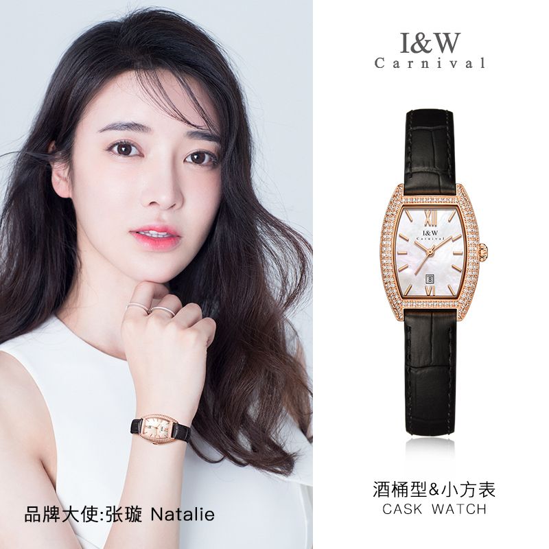 I&W女士手表新款6mm薄女表IW537L小绿表时尚百搭酒桶形爱沃驰腕表送女友