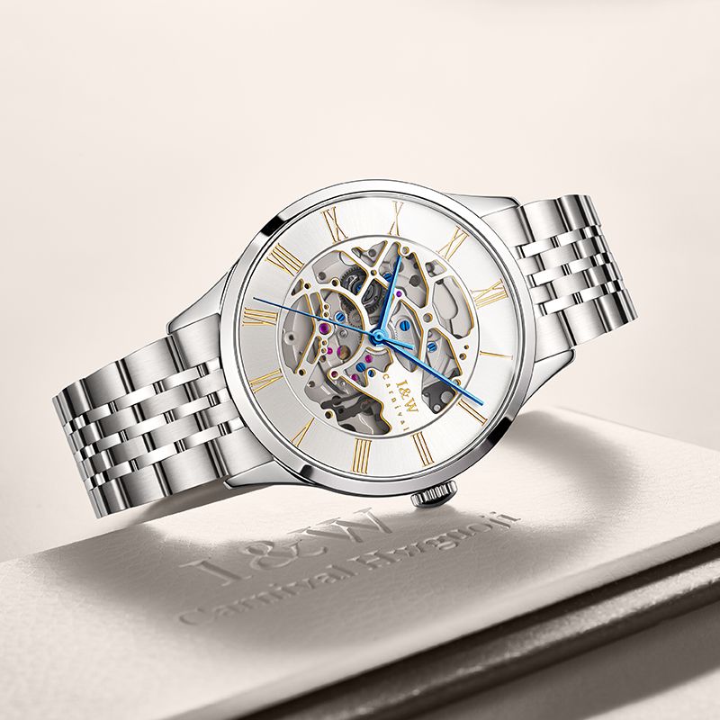 I&W男士手表男表双面镂空机械表钢带腕表IW522G