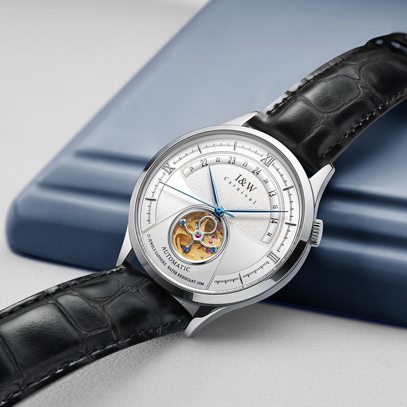 I&W手表男士自动机械表男表卡罗素机械表皇家系列镂空轻奢时尚皮带腕表IW525G