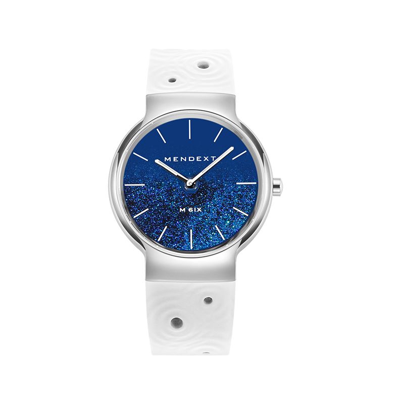 MENDEXT漫狄蓝色流沙面 钢色表壳 白色表带M6IX-L11女士学生腕表手表
