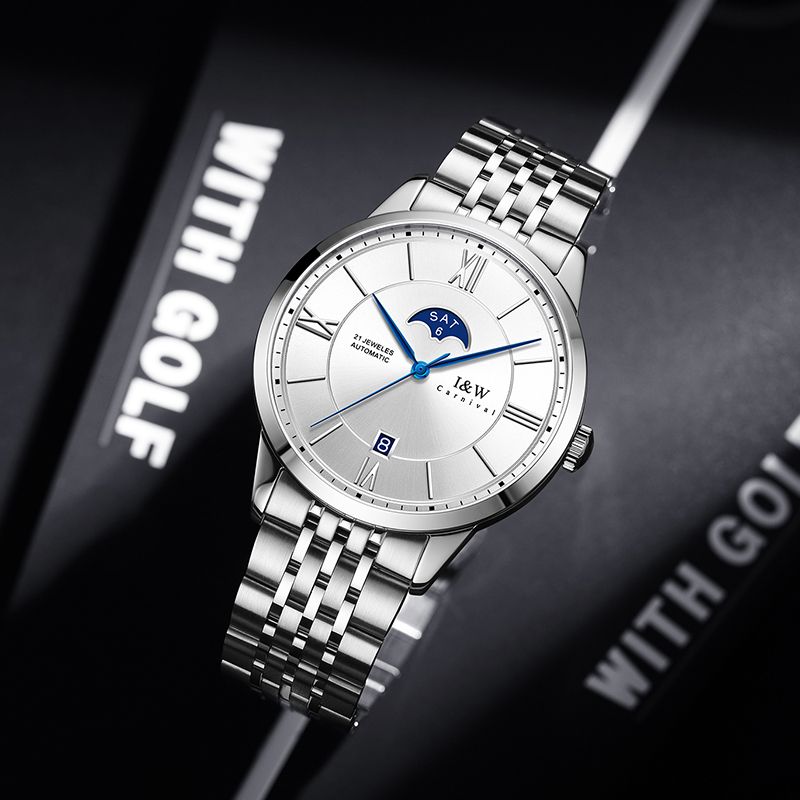 I&W手表男士机械表全自动超薄进口机芯时尚简约商务罗马蓝宝石玻璃防水腕表IW8861G