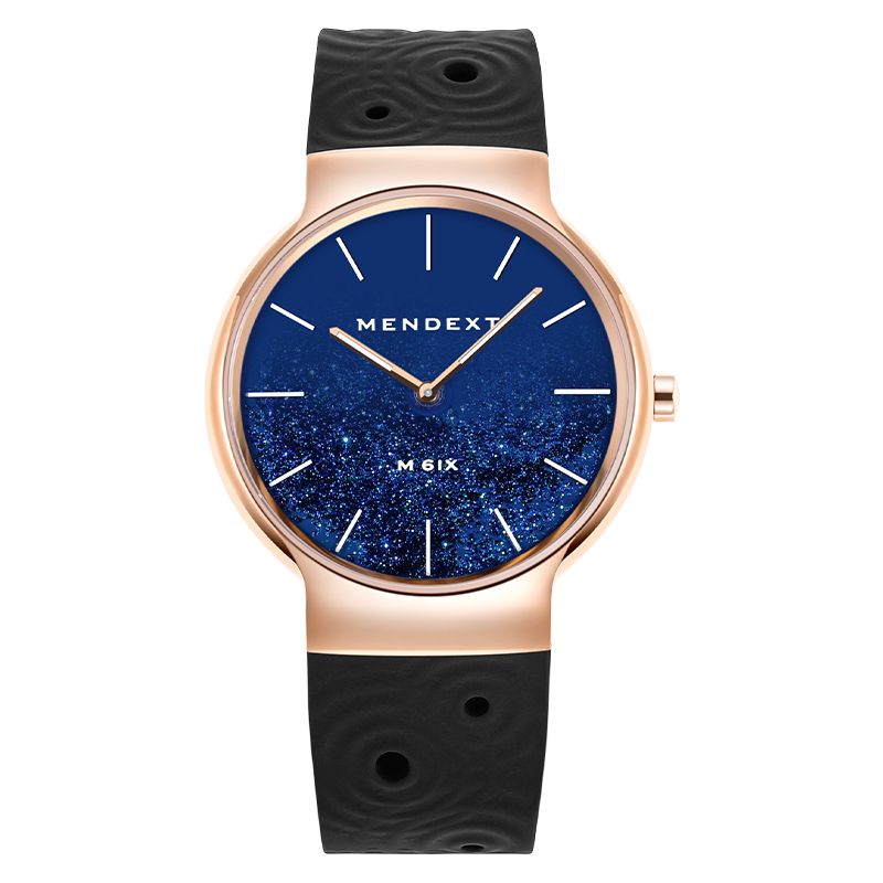MENDEXT漫狄蓝色流沙面 IP镀玫瑰色表壳 黑色表带M6IX-M06男士学生腕表时尚手表