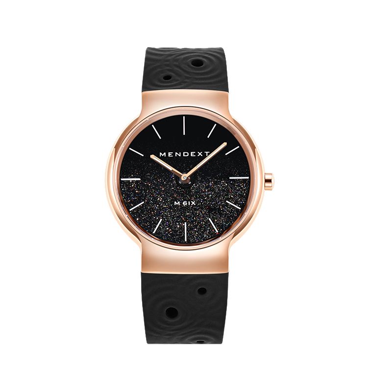 MENDEXT漫狄黑色流沙面 IP镀玫瑰色表壳 黑色表带M6IX-L05女士学生腕表手表