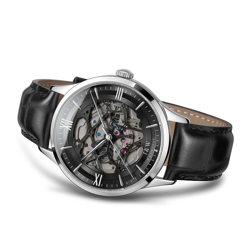 I&W男士手表男表双面镂空机械表牛皮表带IW523G