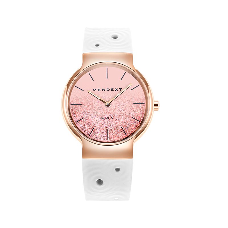 MENDEXT漫狄粉色流沙面 IP镀玫瑰色表壳 白色表带M6IX-L17女士学生腕表手表