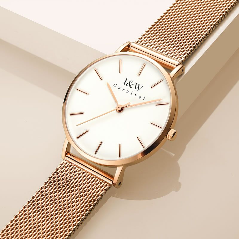 I&W女士手表新款8mm薄女表爱沃驰IW小绿表时尚百搭正品圆形品牌腕表送女友IW3011