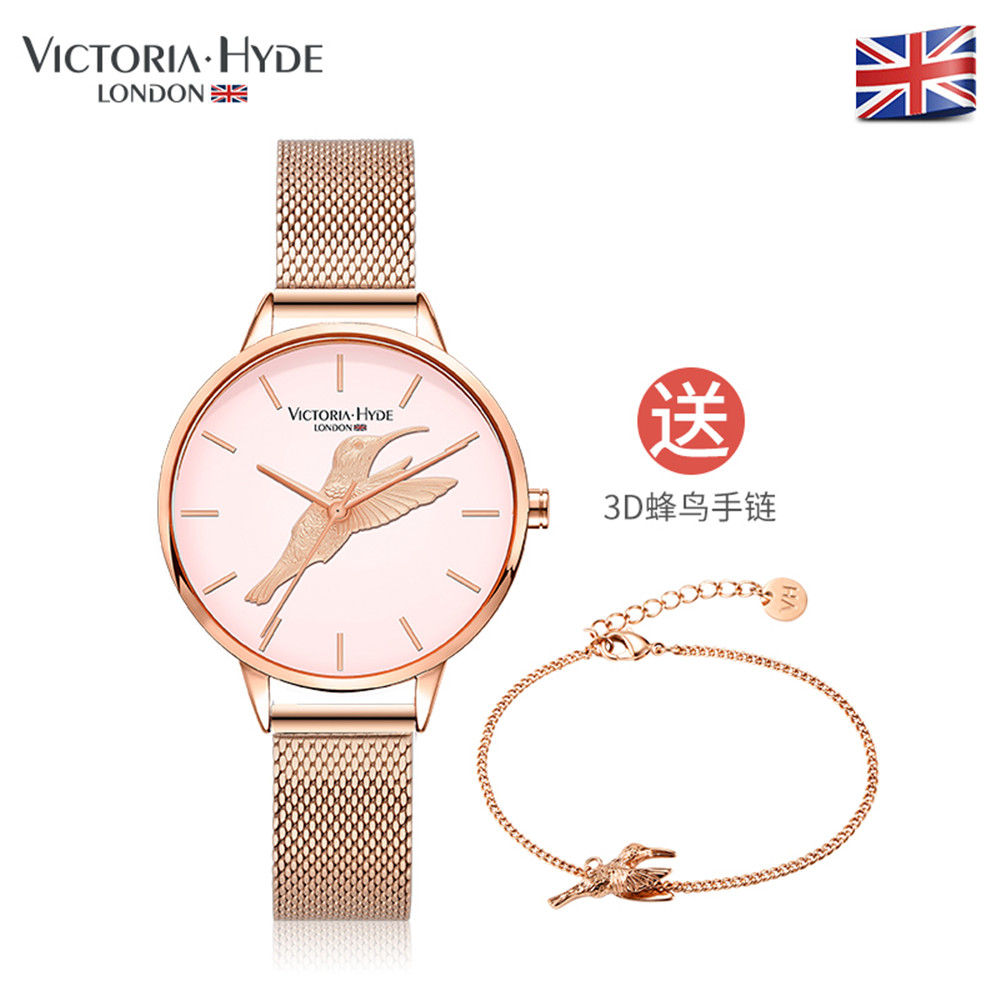 Victoria.Hyde/维多利亚海德 自然系列蜂鸟浮雕石英女表时尚女士防水腕表36mm(送蜂鸟手链)