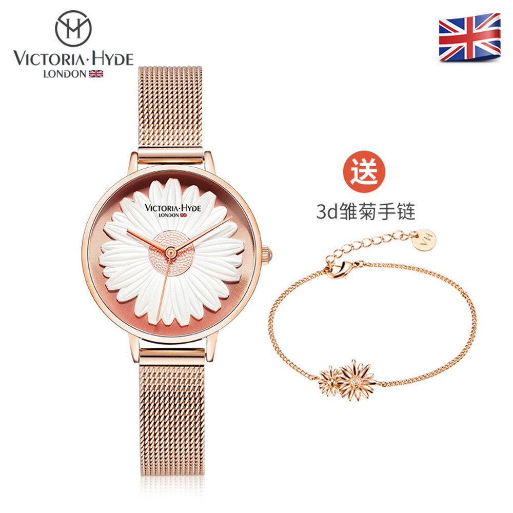 Victoria.Hyde/维多利亚海德 3D雏菊系列石英女表 防水钢带女士腕表32mm(赠送手链)