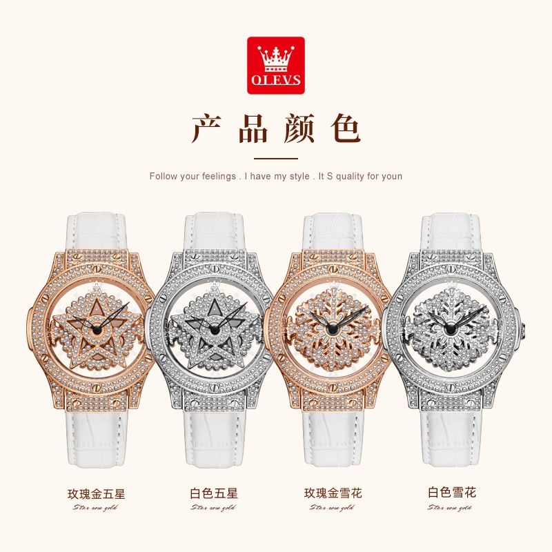 欧利时手表品牌女士手表防水雪花石英手表镶钻镂空五芒星手表送女士 - 利9938