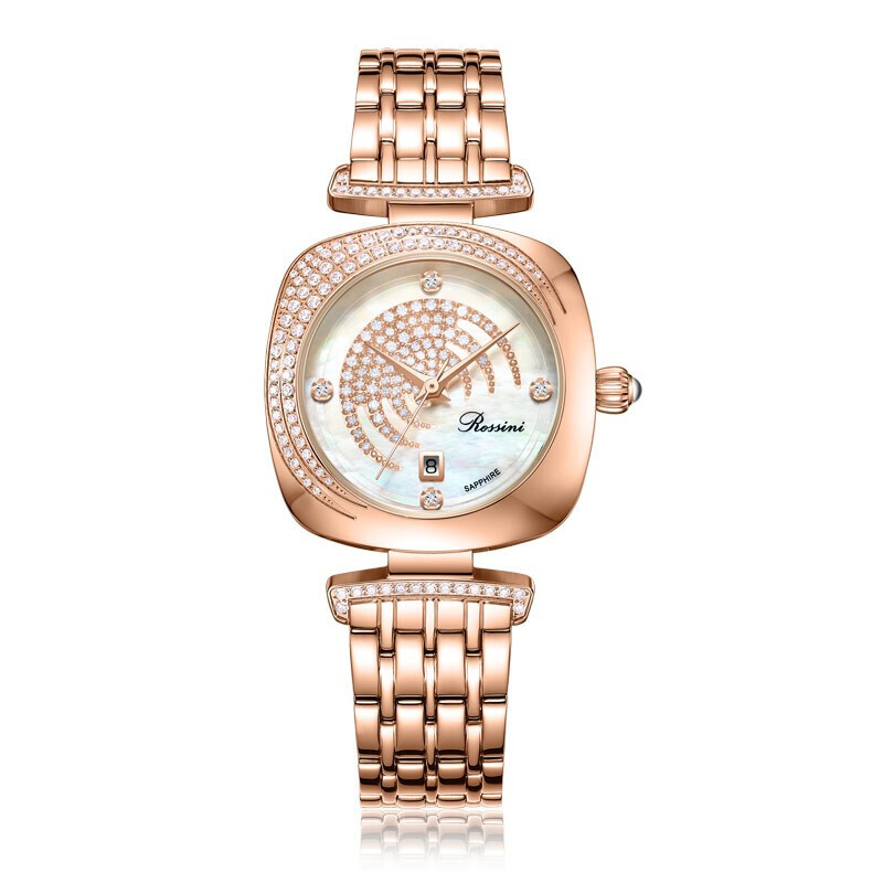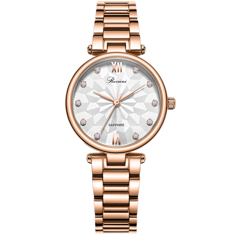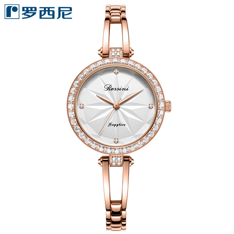 Rossini罗西尼 【专柜同款】启迪系列时尚石英女表镶钻雪花白盘玫瑰金钢带女表5988G01B