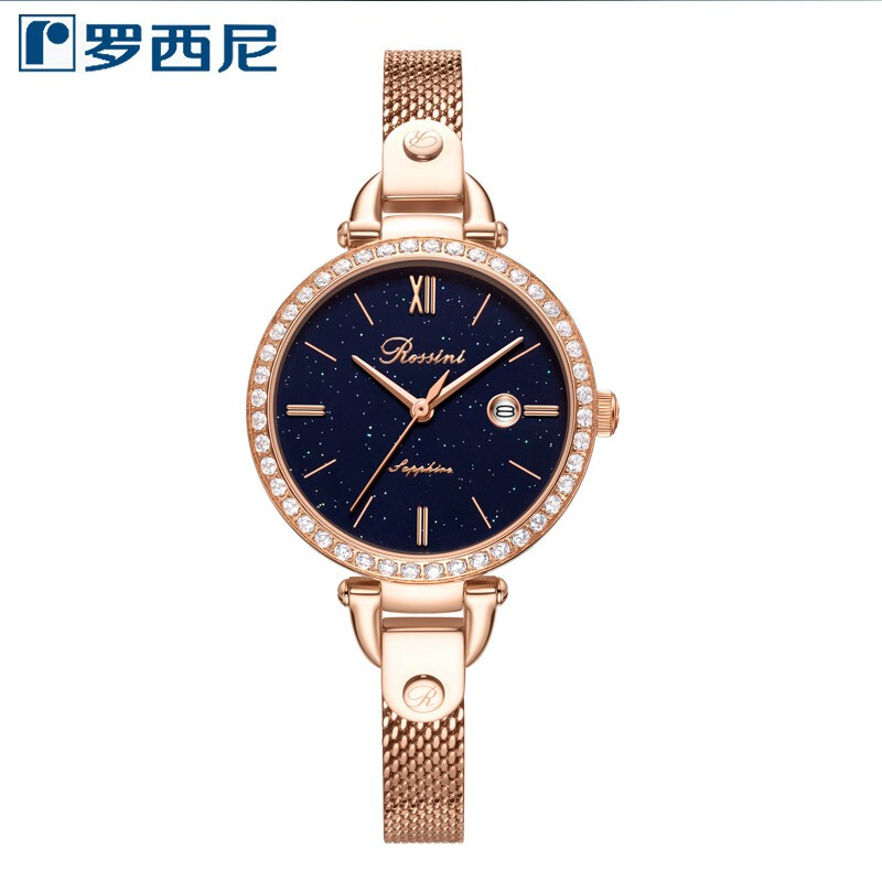 Rossini罗西尼 【专柜同款】石英时尚防水手表潮流复古编织钢带手链款蓝盘女表7898G05D