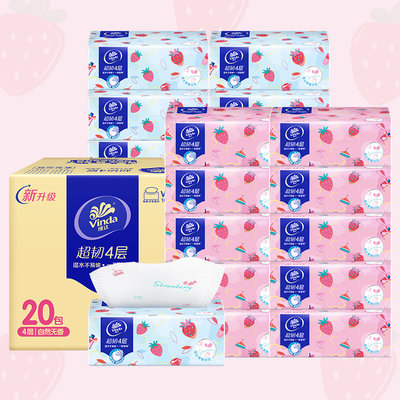 维达(vinda)超韧甜心草莓印花抽纸 90抽*20包*1箱