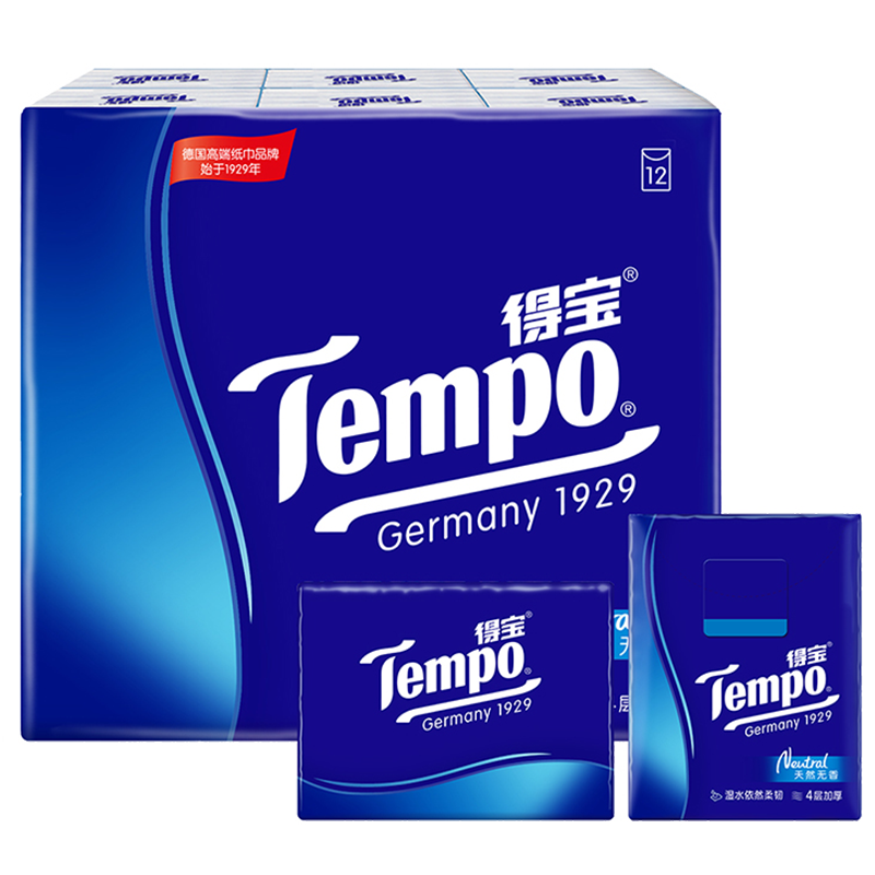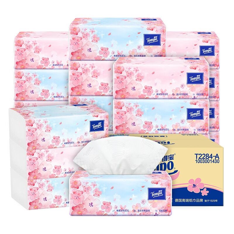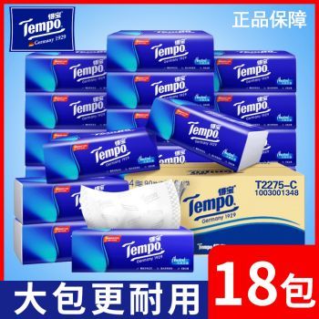 得宝(TEMPO)抽纸无香4层加厚90抽*18包湿水柔韧 纸巾 餐巾纸 卫生纸整箱T2275-C