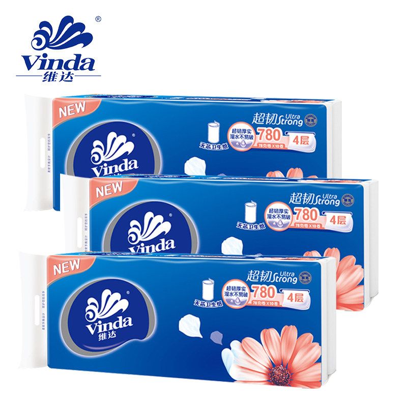 维达超韧780g无芯卷纸长卷4层1提10卷v4143-1