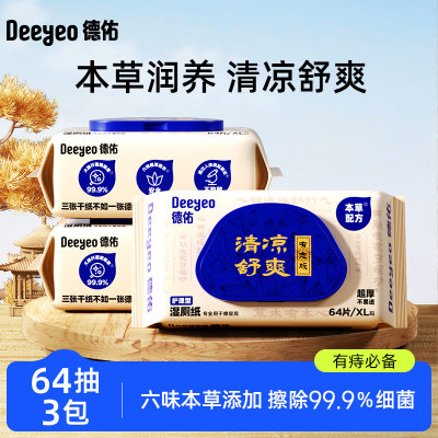 德佑(Deeyeo)本草润养清凉湿厕纸64抽*3包