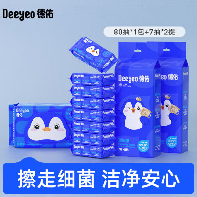 德佑(Deeyeo)家庭装湿厕纸80抽*1包+7抽*2提