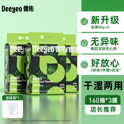 德佑(Deeyeo)悬挂式洗脸柔巾160片*3提