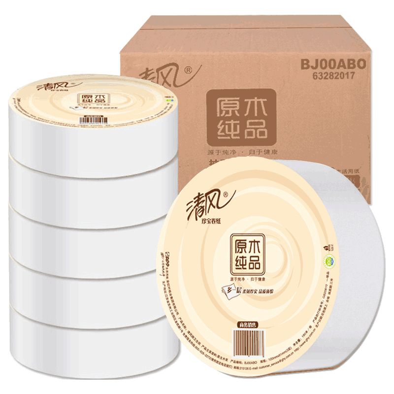 "清风大卷纸大盘纸商用 卫生纸3层180米6卷整 箱【BJ00ABO】"