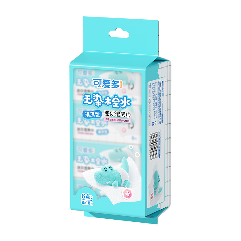 可爱多清凉型可冲散迷你湿厕纸私处清洁8片*8包湿厕纸