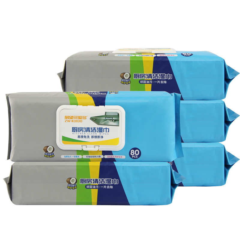 展望可爱多厨房湿巾80抽加大加厚湿纸巾家用大包强力去油去污一次性纸巾清洁油污抹布
