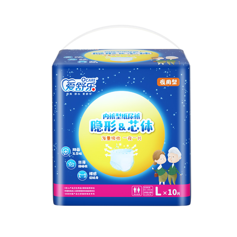 爱舒乐夜用型芯体拉拉裤成人纸尿裤纸尿片老人用尿不湿L码10片