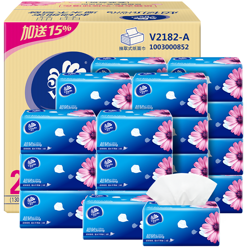 维达(Vinda)超韧抽纸3层150抽24包M码 卫生纸巾抽擦手纸 整箱 【V2182-A】