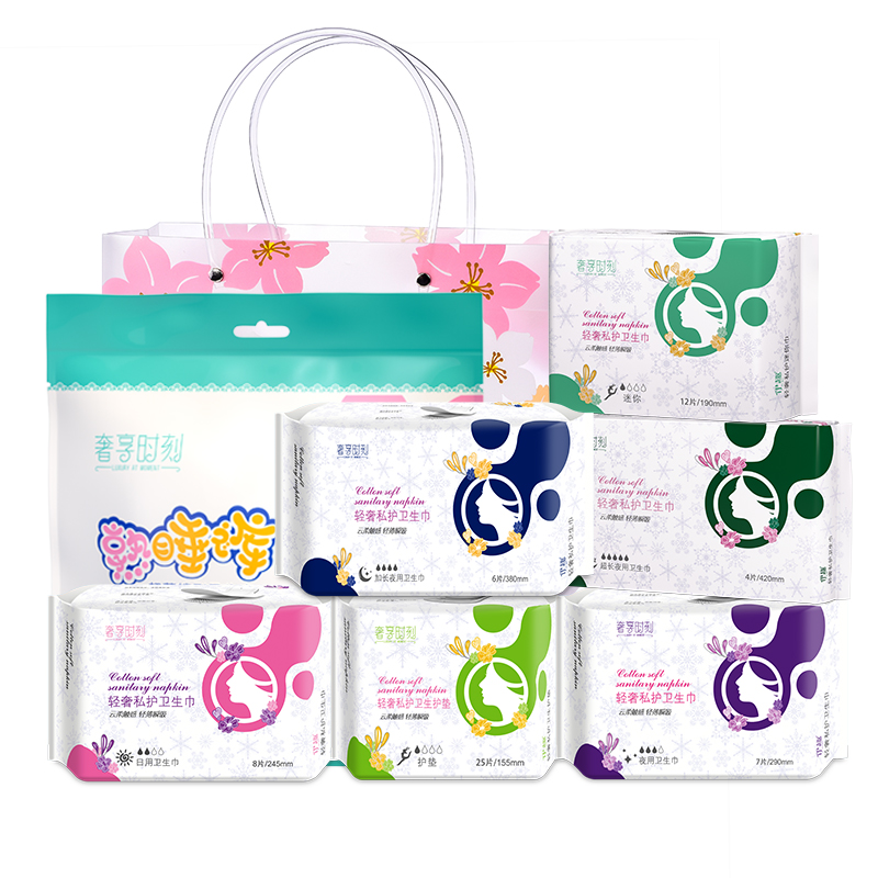 【618专享】伊趣云窝窝奢享时刻超瞬吸卫生巾姨妈巾卫生棉女王套装150/310包配樱花礼袋
