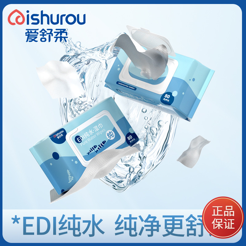 爱舒柔婴儿湿巾新生儿手口专用擦屁屁宝宝湿纸巾家用抽取式成人可用湿巾80抽/包