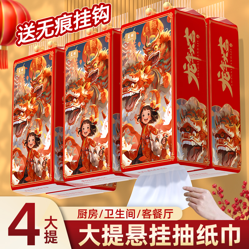 洁唯悬挂式抽纸底部抽取式餐巾纸抽纸卫生纸整箱批发抽纸纸巾家用整箱卫生纸