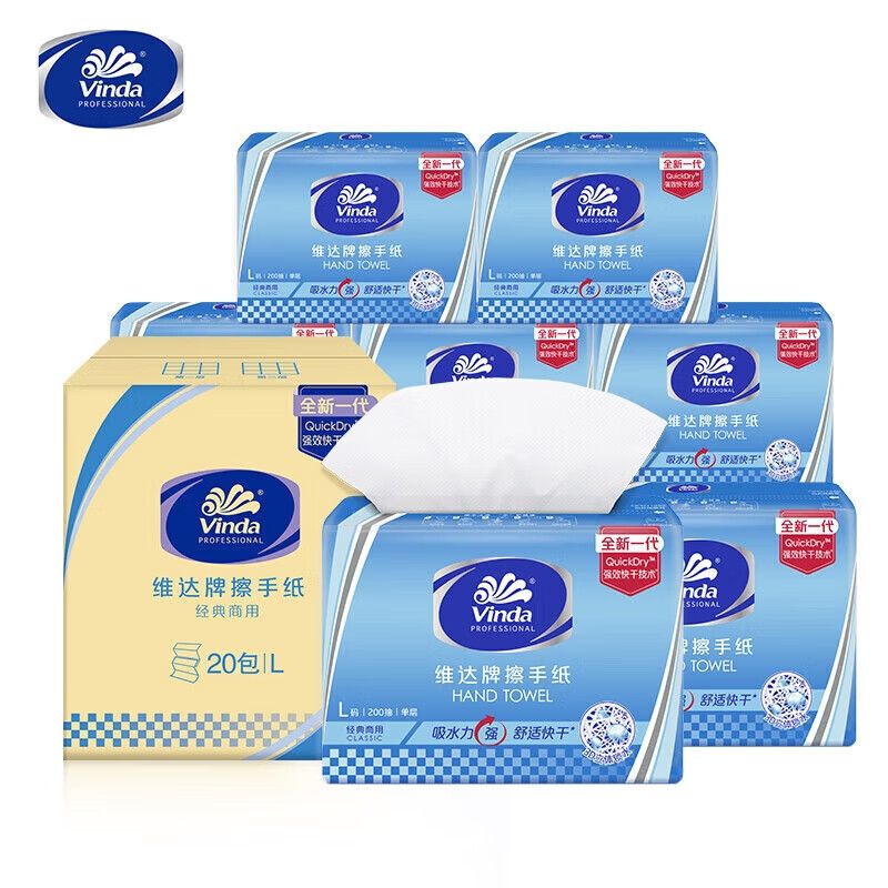 维达擦手纸加厚酒店厕所商用厨房卫生纸巾200抽20包整箱L码【VS2289】