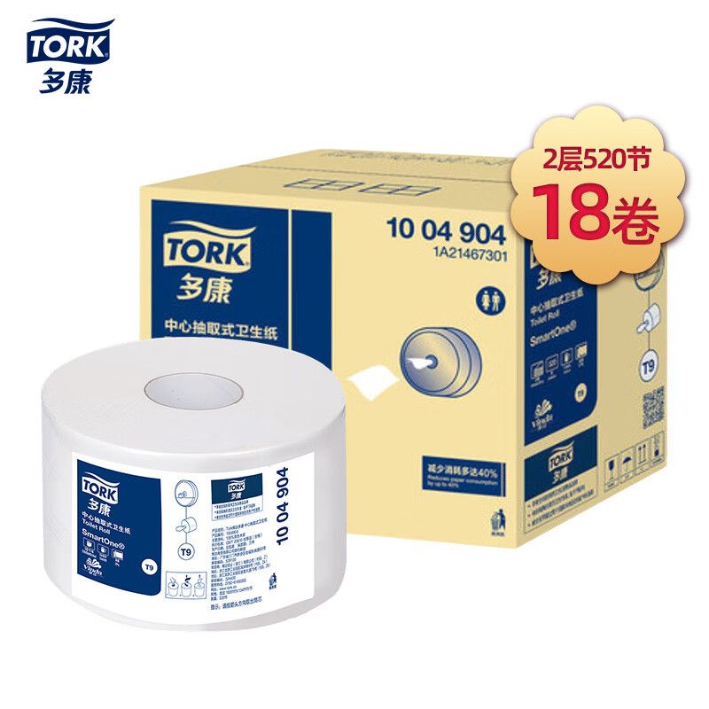 维达多康中心抽卷纸520节18大卷商务专用酒店厕所大盘纸卫生纸 中心抽整箱【K4673-18J】