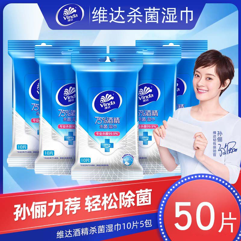 维达(Vinda)湿巾 75%酒精湿巾10片*5包 湿纸巾 卫生湿巾【5xVW1031A】
