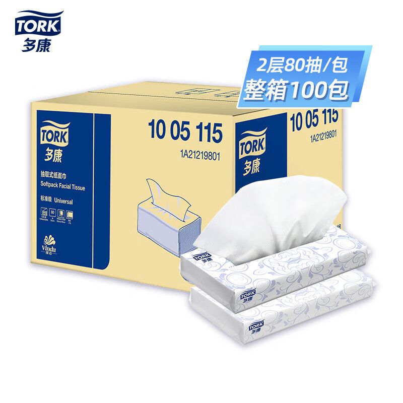 维达多康抽纸2层80抽*100包L码大规格 酒店客房车载软抽 整箱销售【K2198-100】