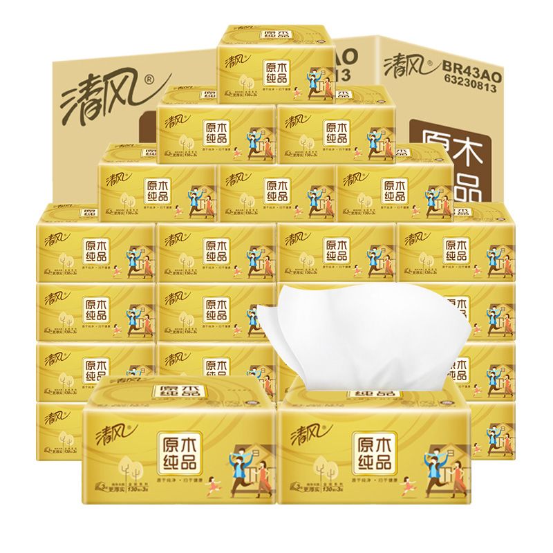 "清风金装抽纸3层130 抽1提4包【BR43AO】"