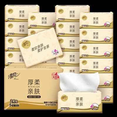清风 奢柔高清立体压花M号抽纸 4层90抽*4包