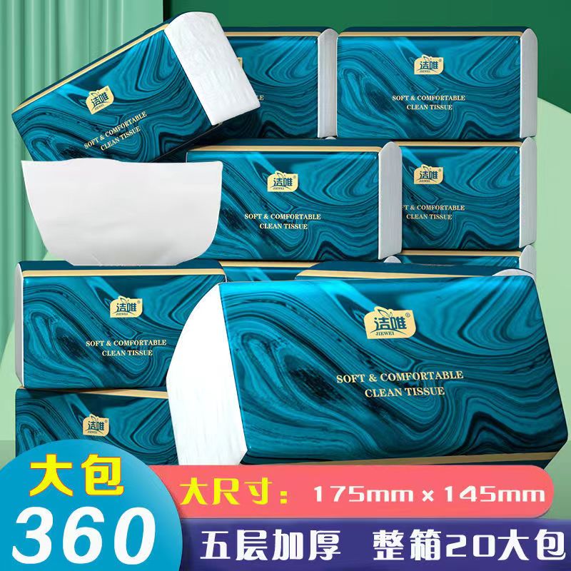 【大包】洁唯大尺寸加量装家用抽纸五层大张加厚纸巾卫生纸20包纸巾婴儿大包