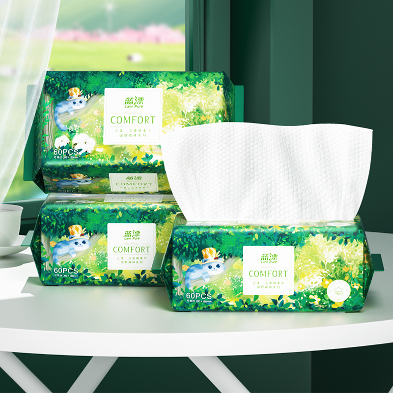 蓝漂(Lampure) 绿野森林棉柔巾60抽5包