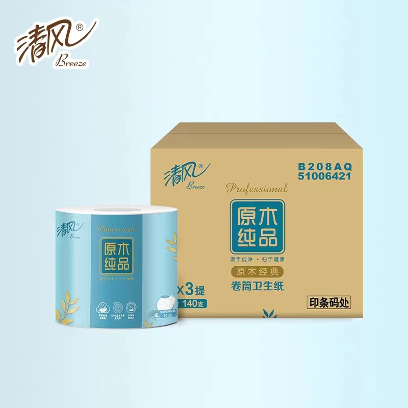 清风 原木纯品小叶细点压花卷纸4层140克/卷(24卷/箱)