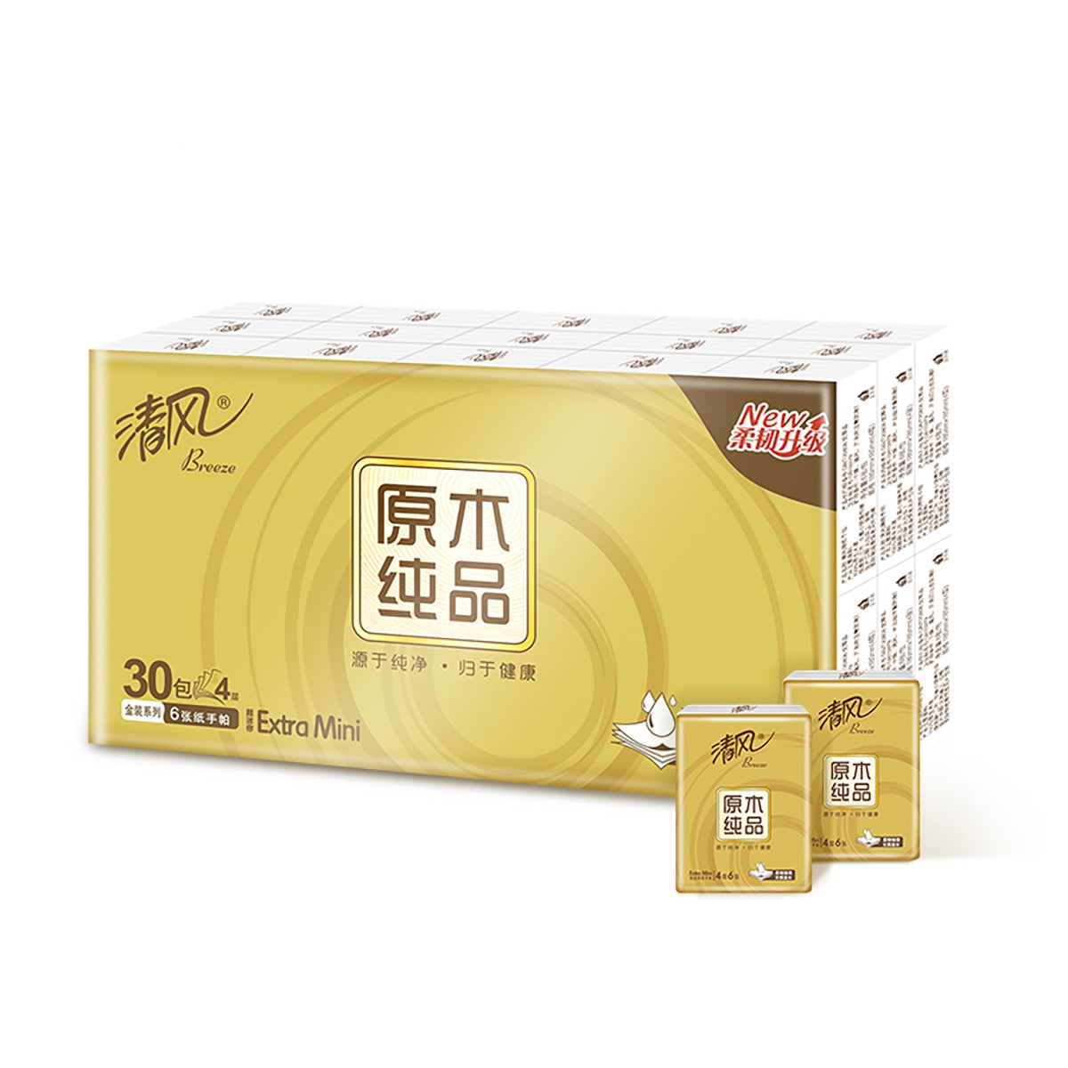 清风 原木金装手帕纸4层6张/包(30包/条)