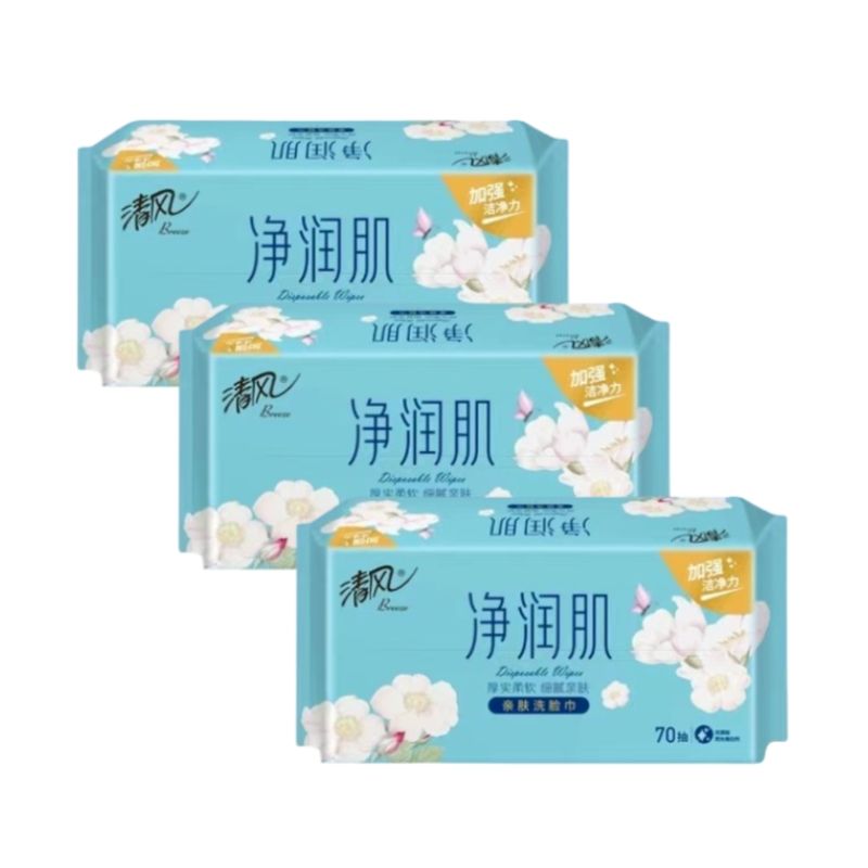 清风 净润肌抽取式棉柔巾洗脸巾(70抽/包*3包)