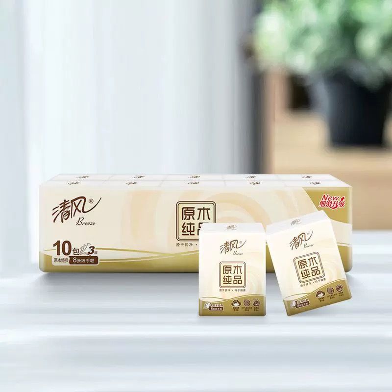清风 原木纯品手帕纸3层10张/包(10包/条)