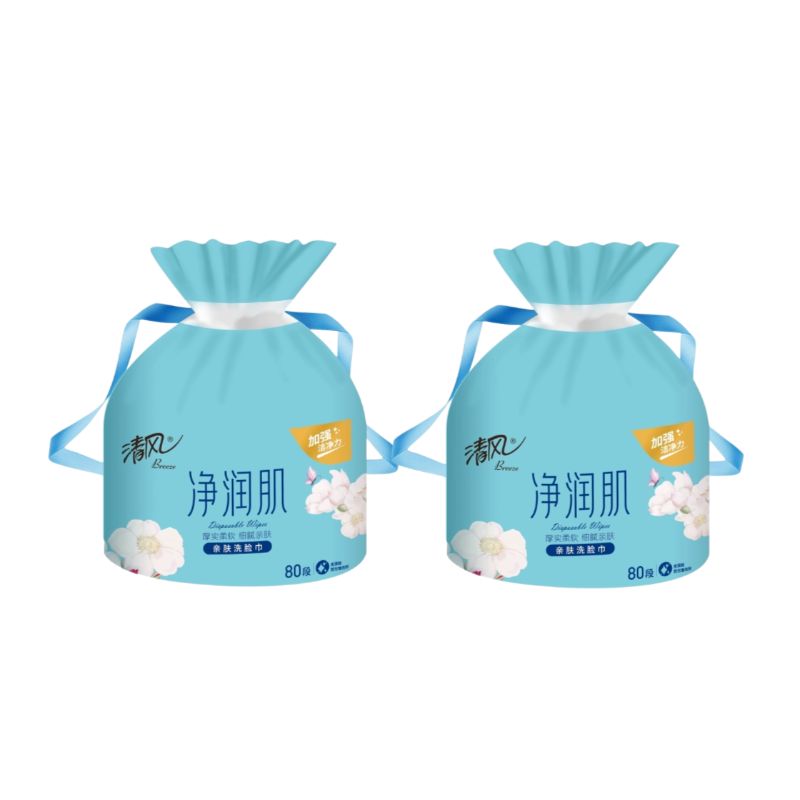 清风 净润肌卷装棉柔巾洗脸巾(80段/包*2包)