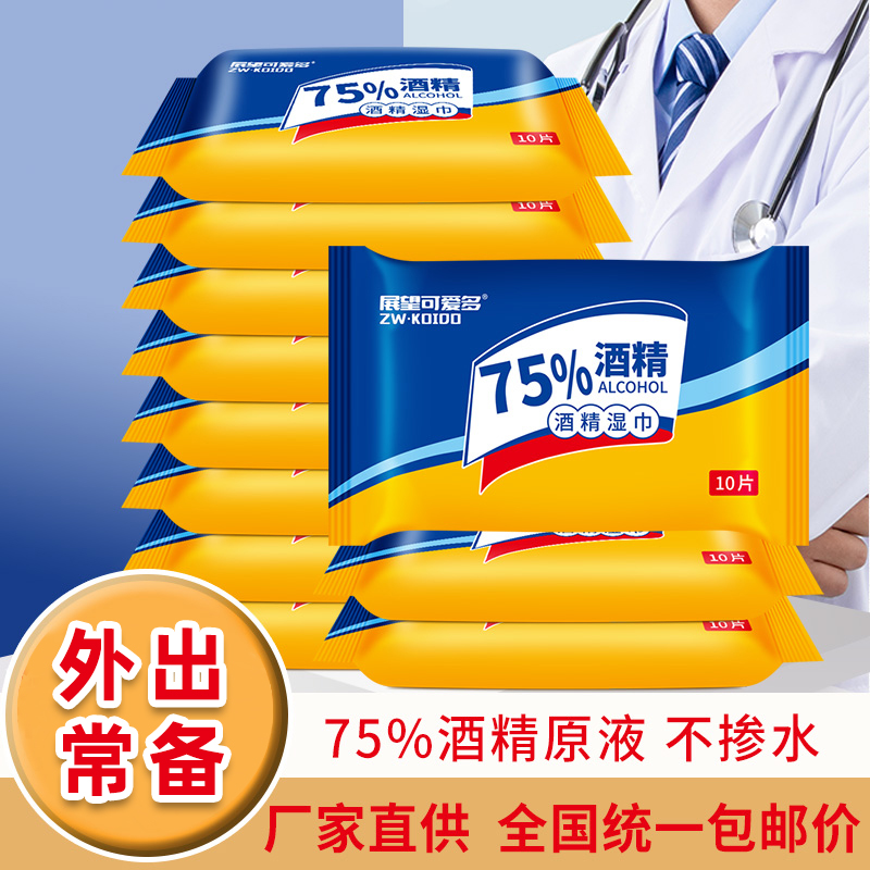 【纯酒精不掺水】展望可爱多 75%酒精原液湿巾纸消毒除菌湿巾便携装10片/包