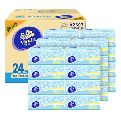 维达 超韧抽取式纸面巾 3层100抽/包 24包/箱 自然无香