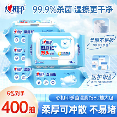 心相印 湿厕纸 温和杀菌洁厕湿纸巾 80片*5包 新老包装随机发