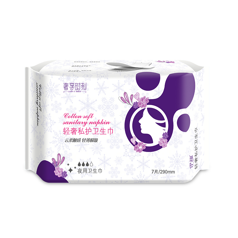 【3包送试用装】伊趣云窝窝奢享时刻棉柔瞬吸卫生巾薰衣草祛味护理卫生棉夜用7片290mm