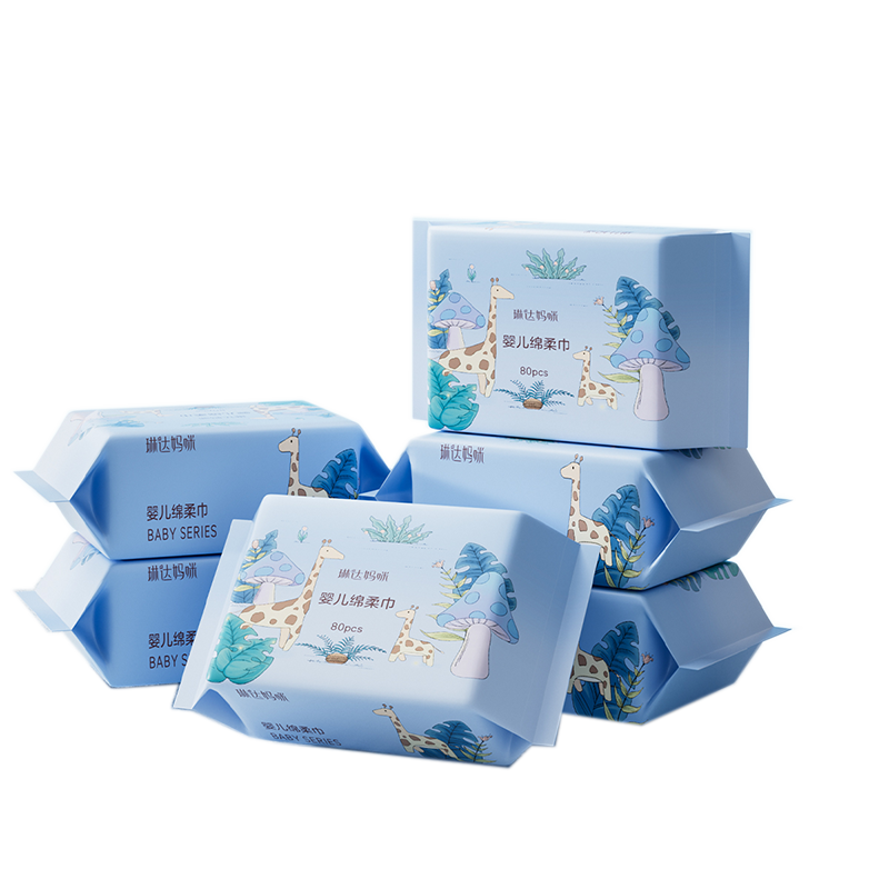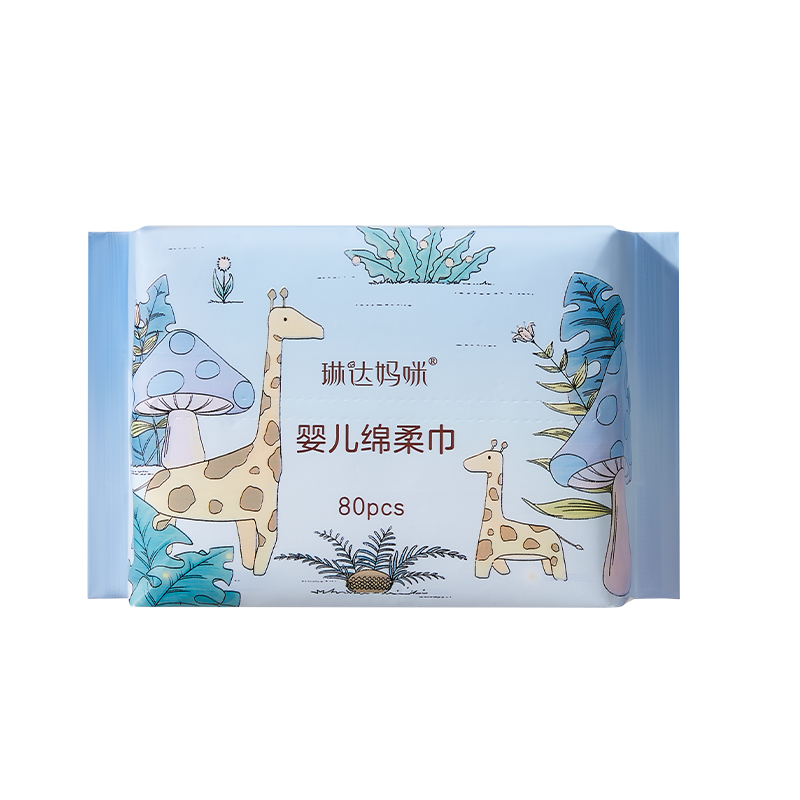 琳达妈咪加厚棉柔巾婴儿使用新生宝宝手口干湿纸加大洗脸巾一次性80抽