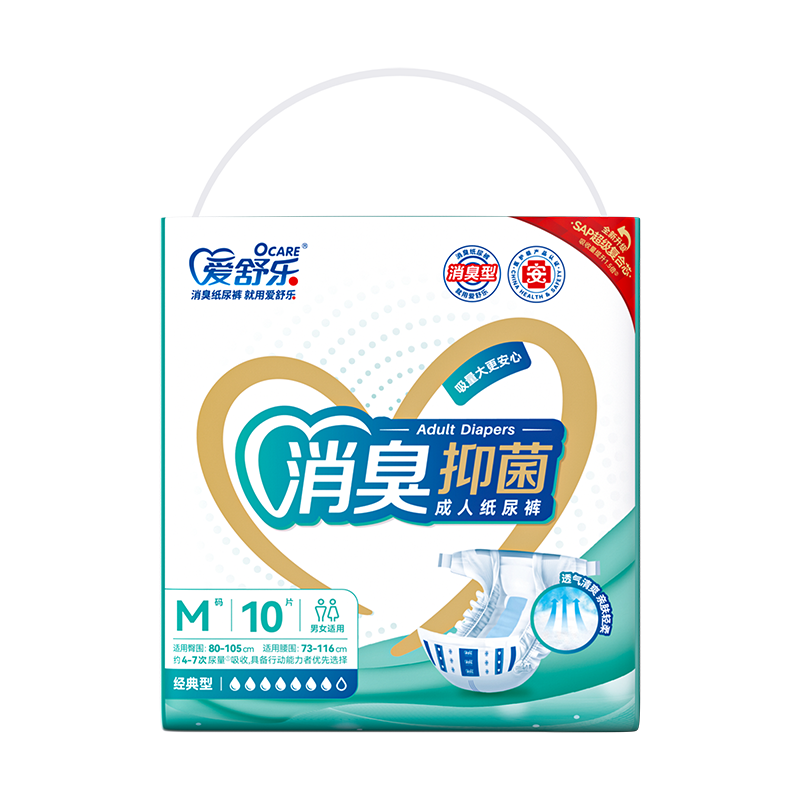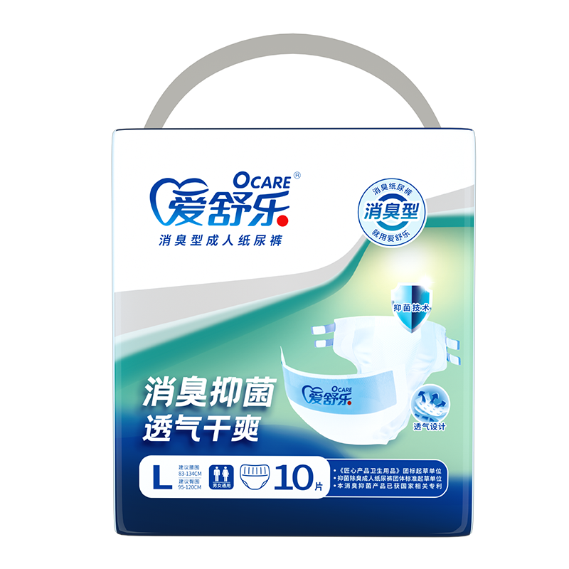 爱舒乐成人纸尿裤消臭抑菌老年人用尿不湿男女尿片M/L/XL码(M与L码 10片,XL码为9片奥)